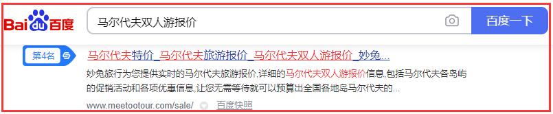 2、關(guān)鍵詞:“馬爾代夫雙人游報(bào)價(jià)” —— 排名:第四名