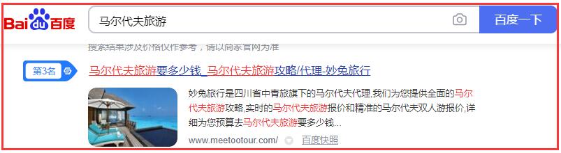 1、關(guān)鍵詞:“馬爾代夫旅游” —— 排名:第三名